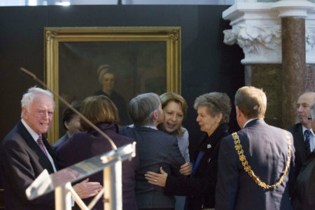 Dr Mary McAleese greets members of the Presentation sisters beneath a portrait of Nano Nagle