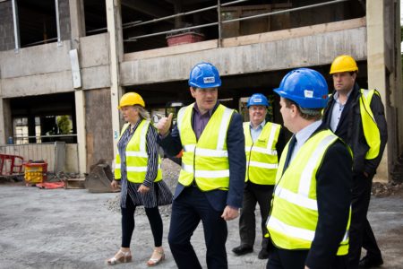 Ann Doherty, Chief Executive, Cork City Council; Minister of State, Peter Burke T.D.; Assistant CE of Cork City Council, Brian Geaney, with (back Row), Cllr Terry Shannon & Cllr Kieran McCarthy, Cork City Council, pictured at the minister’s visit to Springville House, Cork.