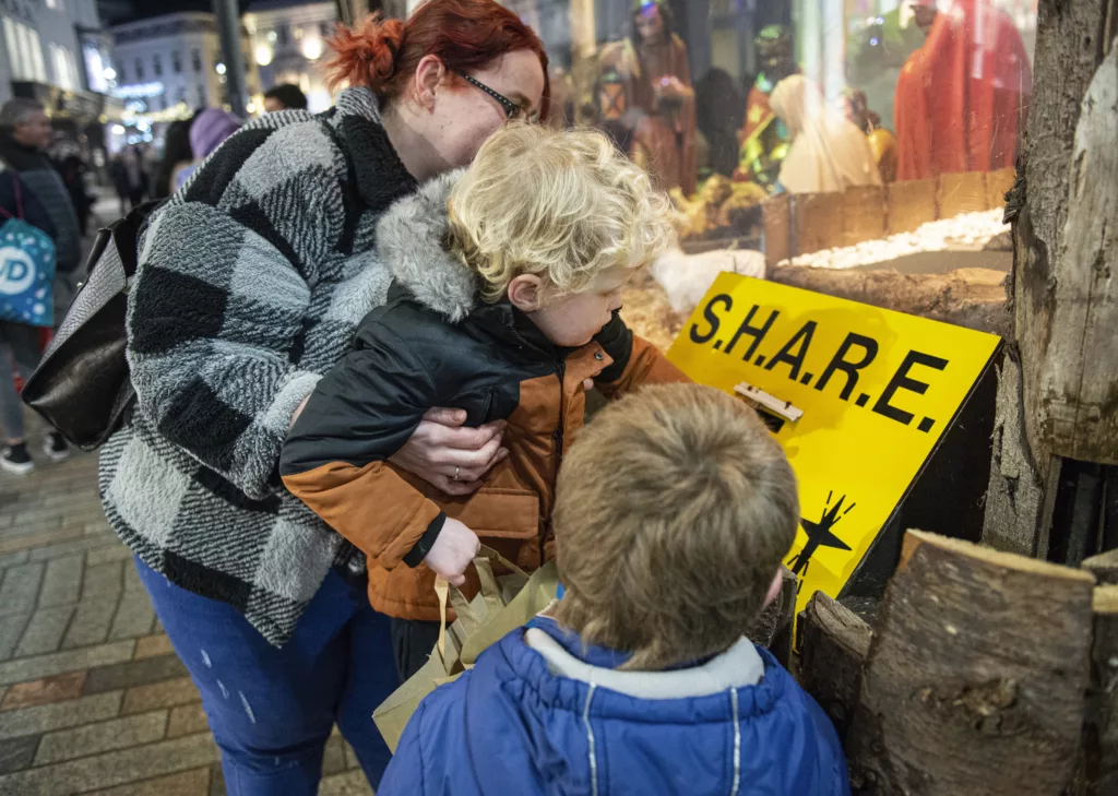 Sarah Fuller from Douglas ,Cork’s Iconic SHARE Crib Lights Up Patrick Street. Almost all of Cork’s 5th Year Students Will Take Part in This Year’s SHARE Collection in Aid of the Elderly.