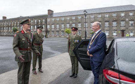 The Lord Mayor of Cork, Cllr. Joe Kavanagh, accompanied by his wife Stephanie (the Lady Mayoress) and Brian Geaney, Asst. Chief Executive, Cork City Council paid a courtesy visit to Collins Army Barracks last Friday. They were greeted by GOC Brig. Gen. Paddy Flynn; Barrack OC, Lt. Col. Noel Maher and Exec Officer Col. Ray O’Lehan.