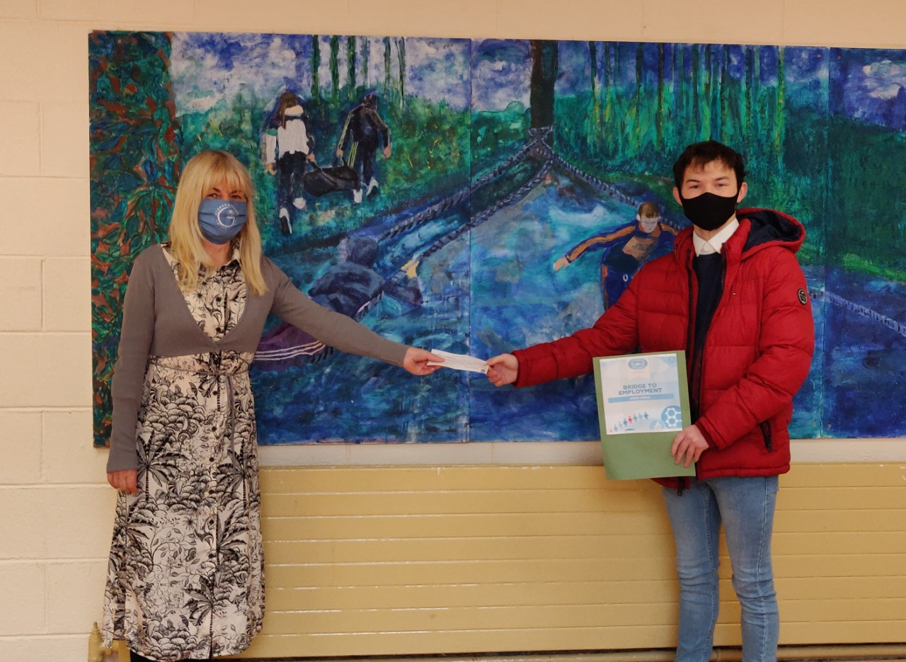 Ciaran was presented with a cheque of €1,000 from Johnson & Johnson’s Access to Education, Bridge to Employment programme which aims to encourage and assist students in Cork to stay in school and progress to Further and Higher Education. Ciaran will receive a total of €3,000 over three years to help him progress in his studies.