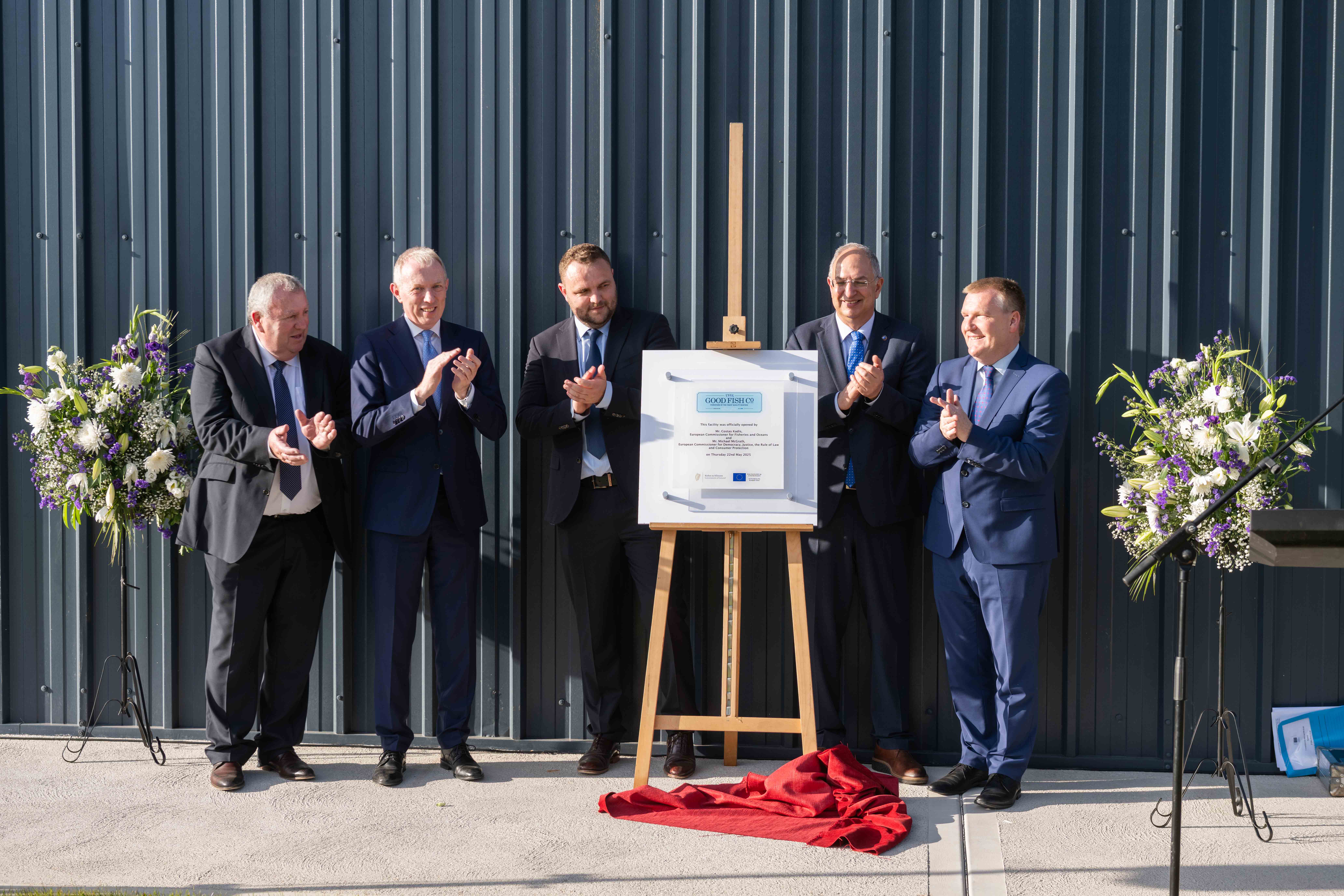 To mark European Maritime Day, Ireland’s EU Commissioner, Michael McGrath, along with Fisheries & Oceans Commissioner Costas Kadis, and Timmy Dooley TD, Minister of State for the Marine, Fisheries and Digital Mapping, formally launched the multi-million euro processing facility in Shanbally, Ringaskiddy before touring the building and unveiling a commemorative plaque alongside Donagh & Denis Good of Good Fish Company.