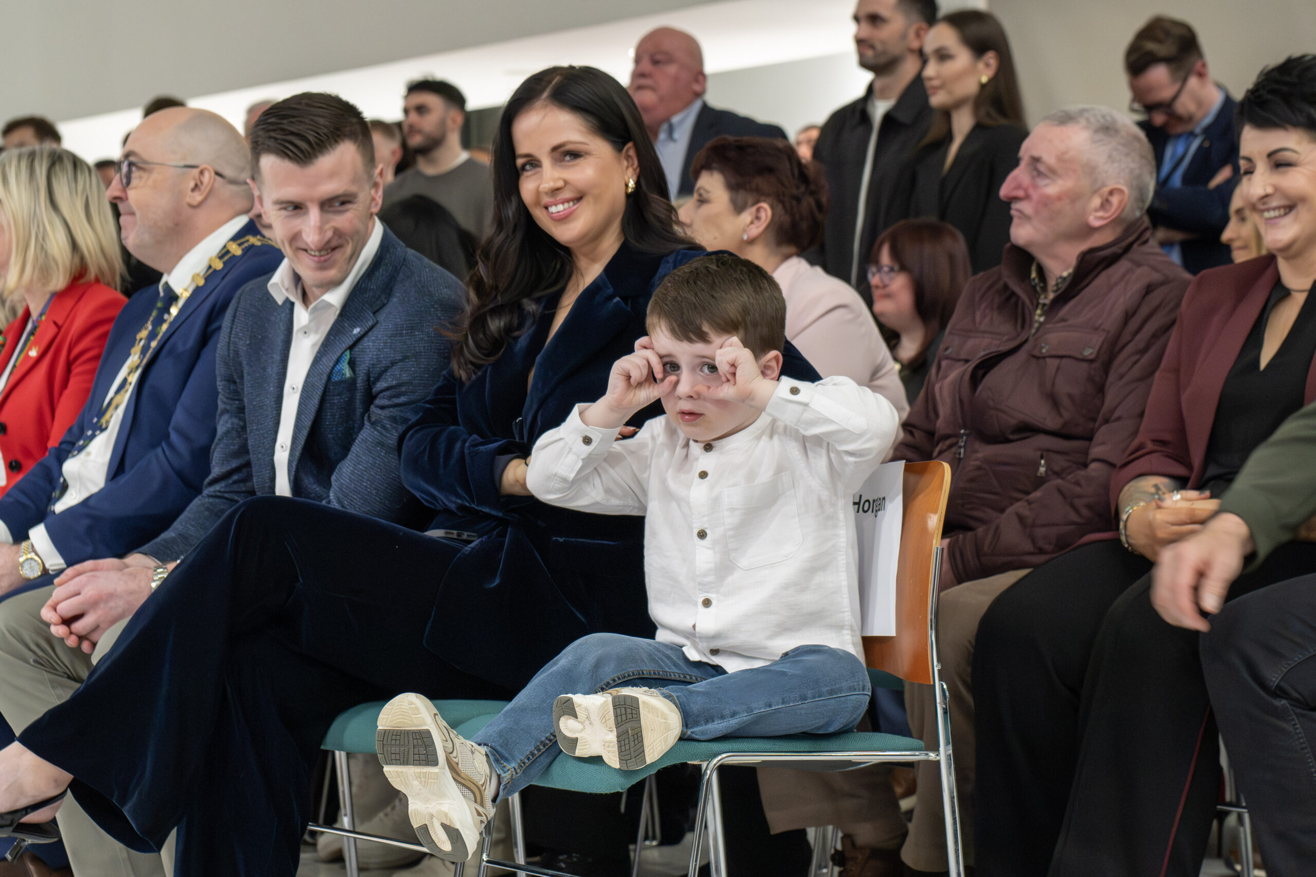 Patrick’s and Ashley’s son Jack having some fun at the civic reception.