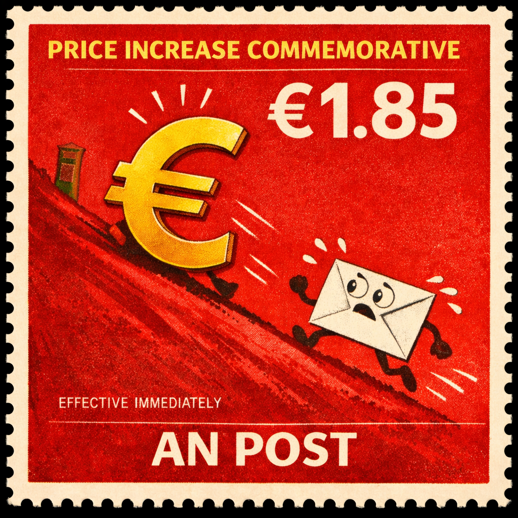 An Post stressed that the price increase — and the stamp — reflect “rising operational costs, global pressures, and the emotional toll of carrying heavy envelopes full of bad news.”