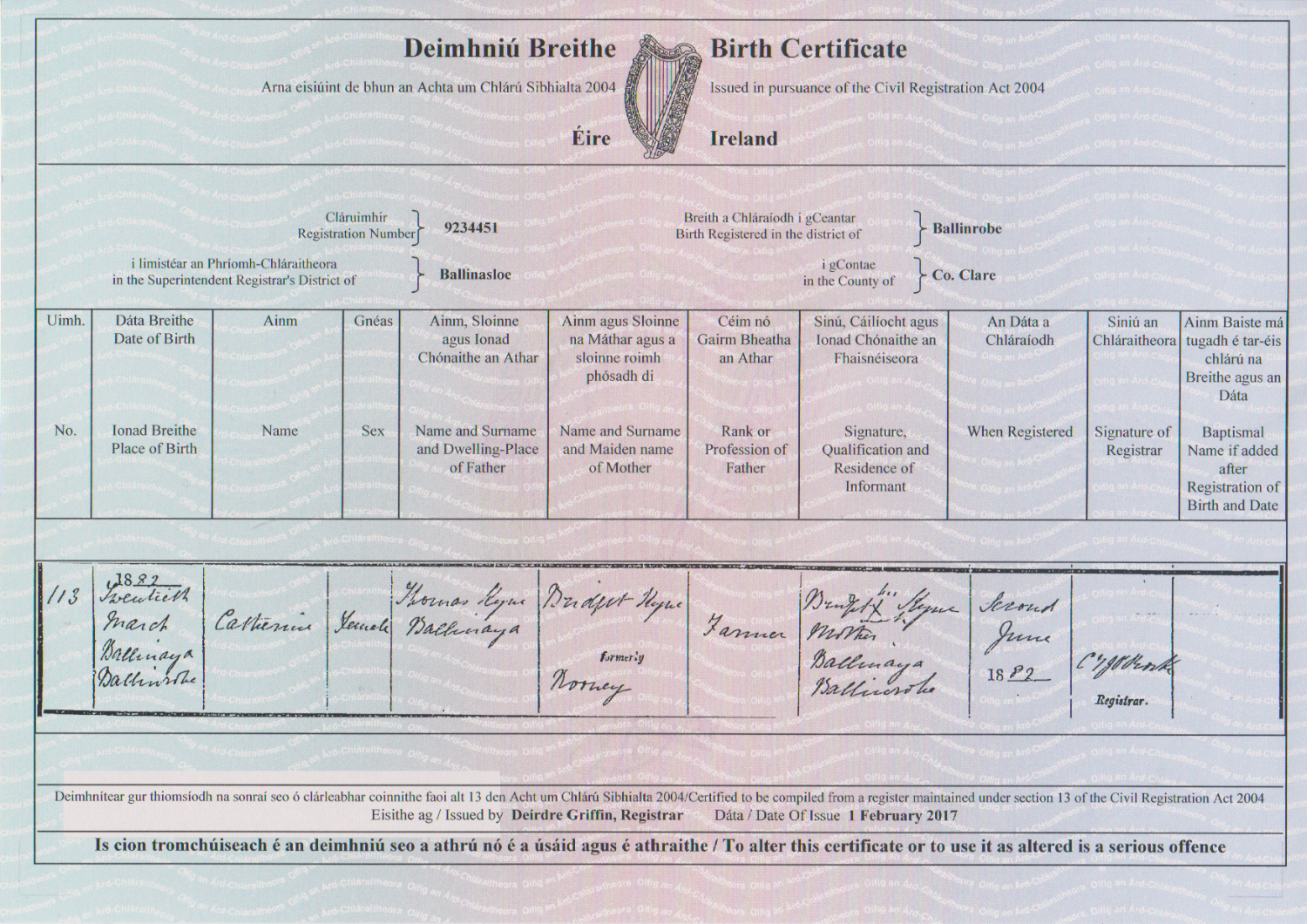 - €10 to have a certificate authenticated (only available from the General Register Office)